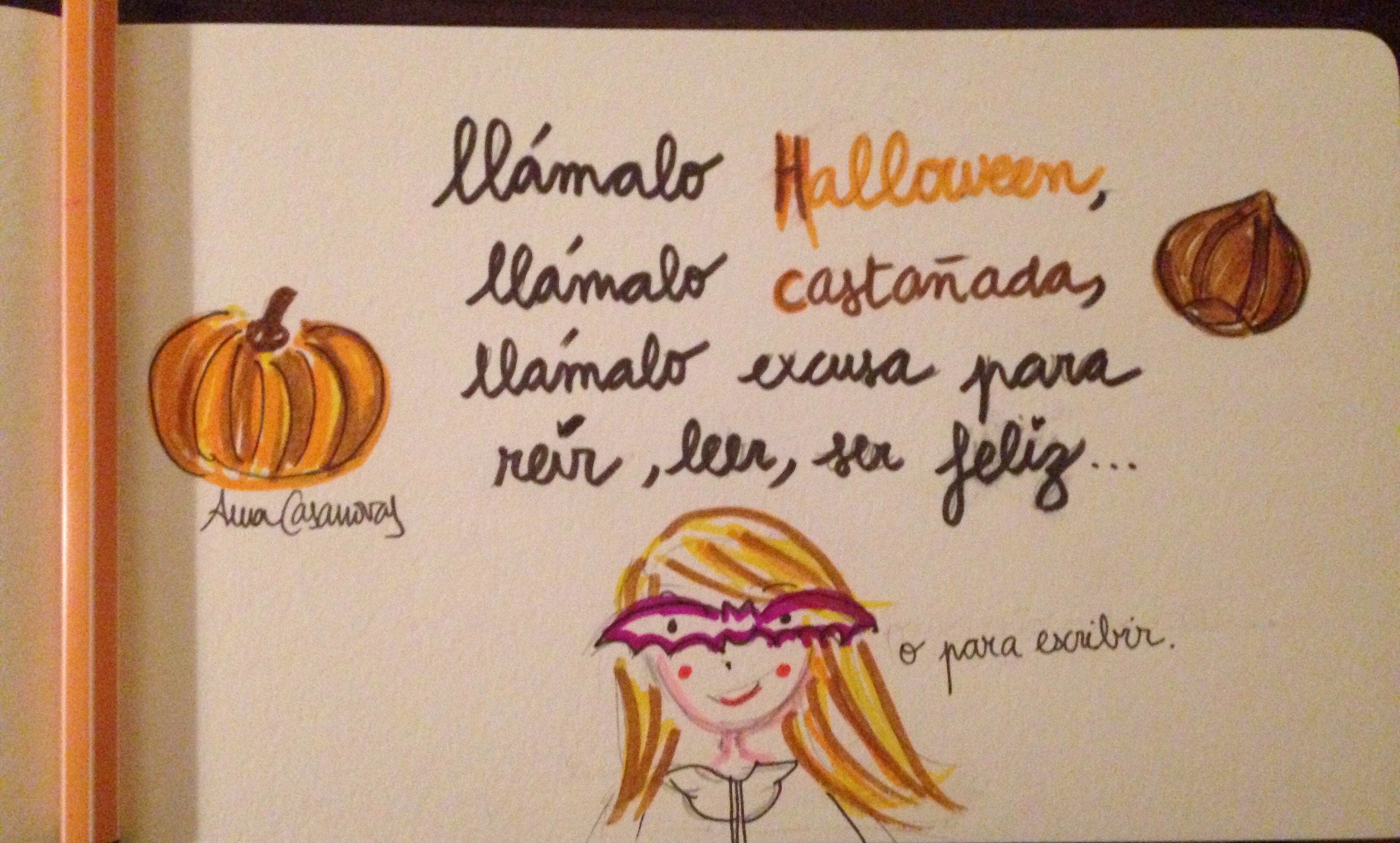 Feliz Halloween, feliz castañada, feliz día de la semana…no sé tú, pero yo voy a celebrarlo comprándome un libro y regalando otro a alguien especial y sí, tal vez también les compre unas galletas y una bolsa de castañas. Cuéntame qué libro eliges o si descubres algún tesoro, yo dentro de unos días te invito a mi próxima presentación y sigo compartiendo contigo mis historias. Ojalá quieras leerlas.